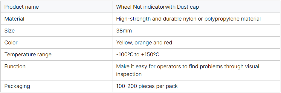 This series combines loose wheel nut indicators andprotective caps to indicate movement of the wheel nuts andprotect them from extemal factors such as water, dust, roadsalt and rust. By placing the nut indicators in a recognizablepattern (e.g. dot to dot), any movement of the nuts isimmediately apparent. They also melt to indicate anyoverheating issues. This version is designed with a longreach barrel specifically for wheels with trim or step rings.